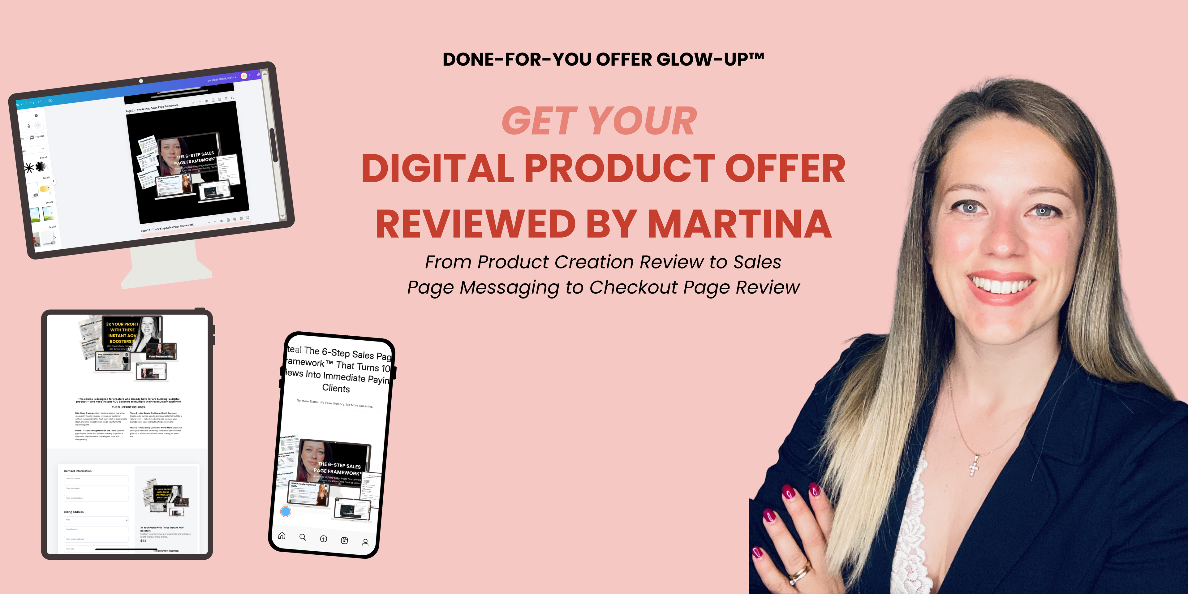Feedback on your digital product or offer idea (including Canva products if applicable) to improve clarity, positioning and perceived value.
